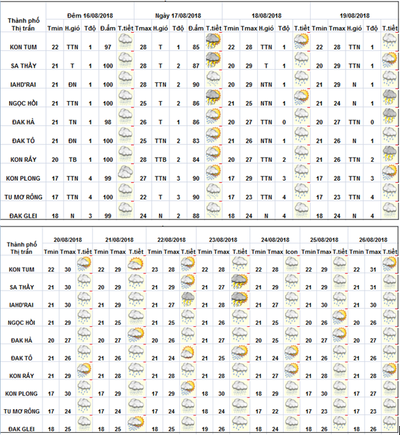 DỰ BÁO KHÍ TƯỢNG THUỶ VĂN TỪ NGÀY 11 ĐẾN NGÀY 20 THÁNG 8 NĂM 2018 CÁC KHU VỰC TRÊN PHẠM VI TỈNH KON TUM