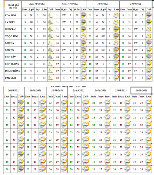 BẢN TIN NHẬN ĐỊNH XU THẾ THỜI TIẾT TỪ NGÀY 11 ĐẾN NGÀY 20 THÁNG 9 NĂM 2021 CÁC KHU VỰC TRÊN PHẠM VI TỈNH KON TUM