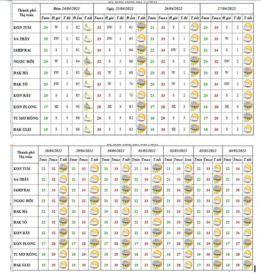 BẢN TI N THỜI TIẾT 10 NGAY 9 HUYỆN VÀ TP