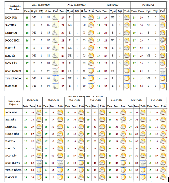 BẢN TIN DỰ BÁO THỜI TIẾT ĐIỂM 10 NGÀY CÁC HUYỆN VÀ TP. KON TUM