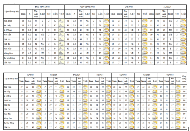 BẢN TIN DỰ BÁO, CẢNH BÁO THỜI TIẾT ĐIỂM ĐẾN 10 NGÀY KHU VỰC TỈNH KON TUM