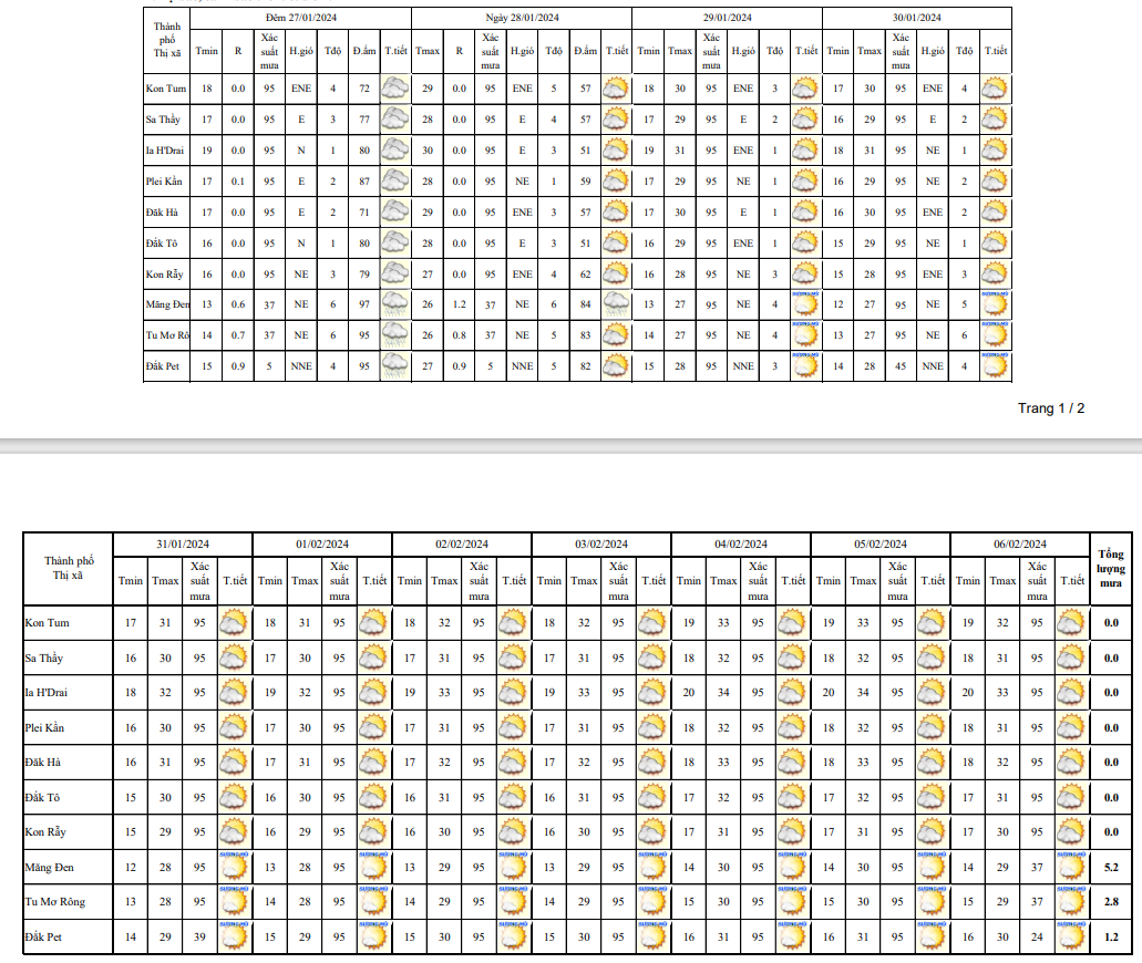 BẢN TIN DỰ BÁO, CẢNH BÁO THỜI TIẾT ĐIỂM ĐẾN 10 NGÀY KHU VỰC TỈNH KON TUM