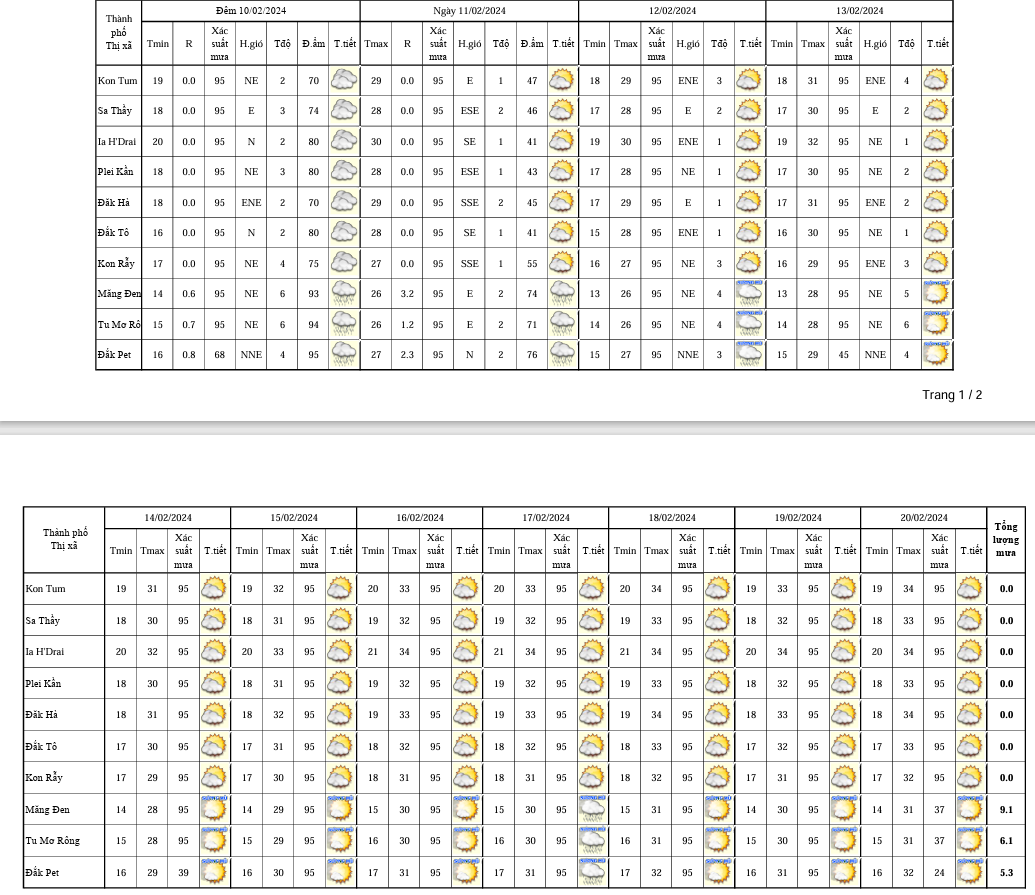 BẢN TIN DỰ BÁO, CẢNH BÁO THỜI TIẾT ĐIỂM ĐẾN 10 NGÀY KHU VỰC TỈNH KON TUM