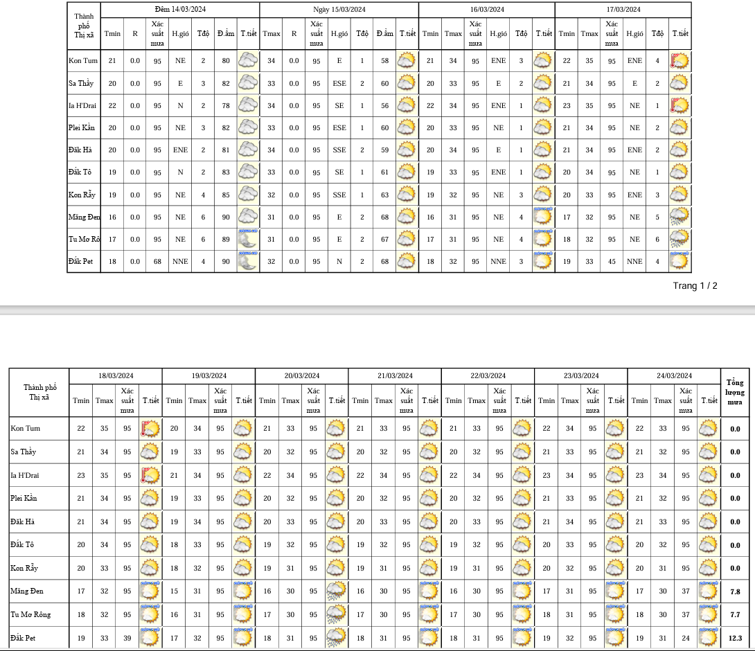 BẢN TIN DỰ BÁO, CẢNH BÁO THỜI TIẾT ĐIỂM ĐẾN 10 NGÀY KHU VỰC TỈNH KON TUM