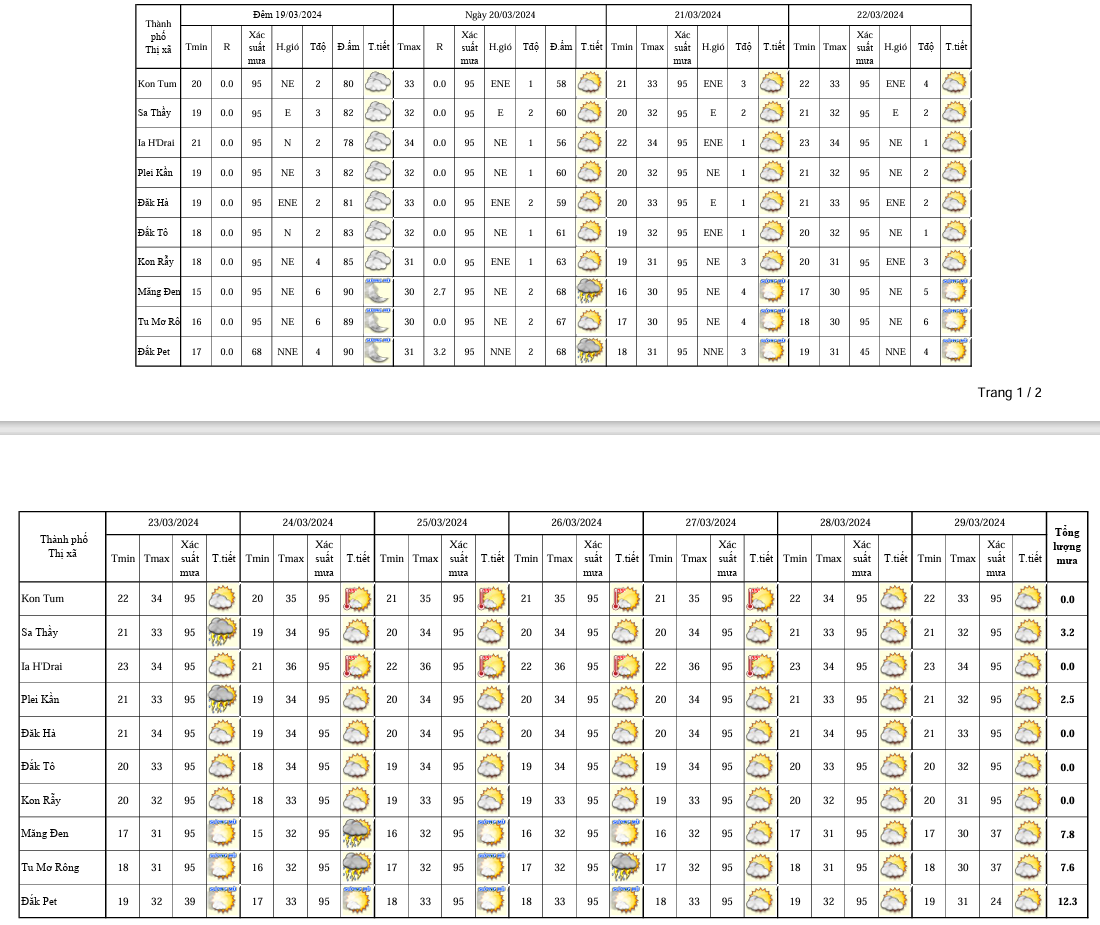 BẢN TIN DỰ BÁO, CẢNH BÁO THỜI TIẾT ĐIỂM ĐẾN 10 NGÀY KHU VỰC TỈNH KON TUM