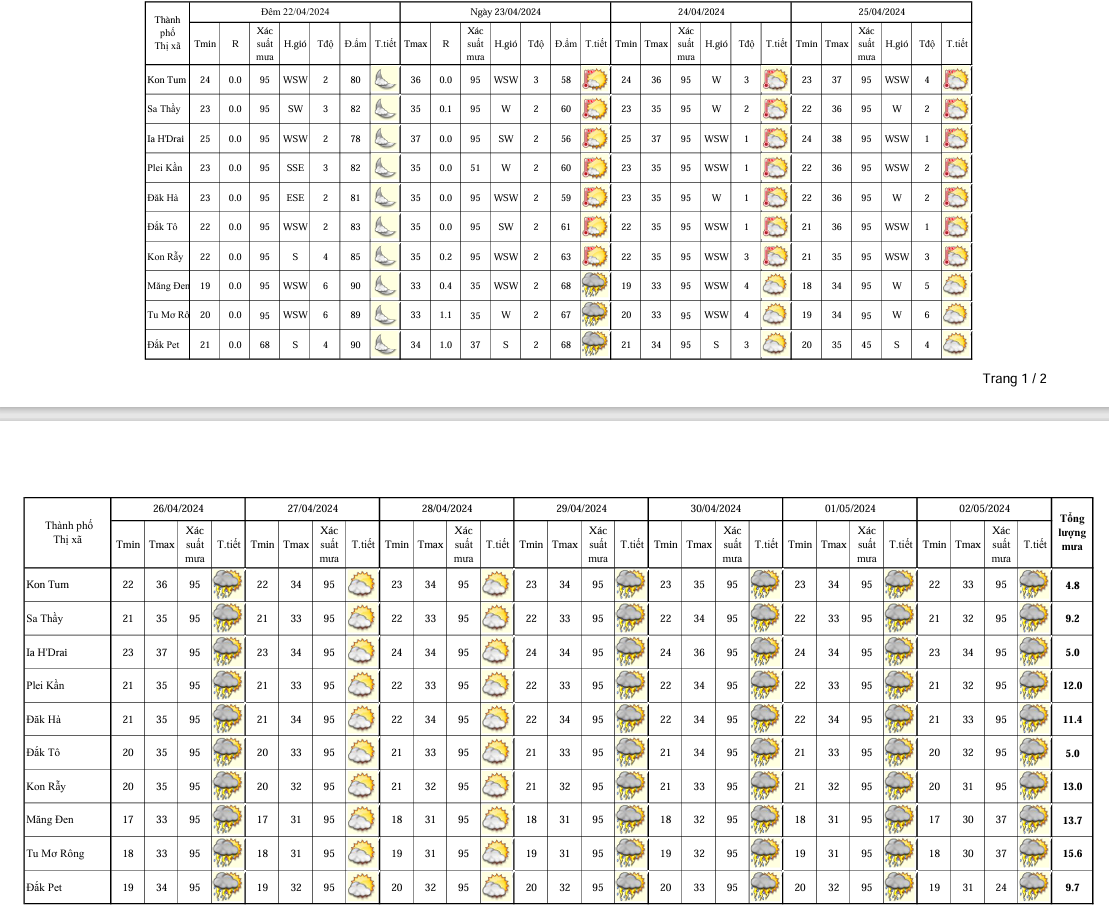 BẢN TIN DỰ BÁO, CẢNH BÁO THỜI TIẾT ĐIỂM ĐẾN 10 NGÀY KHU VỰC TỈNH KON TUM