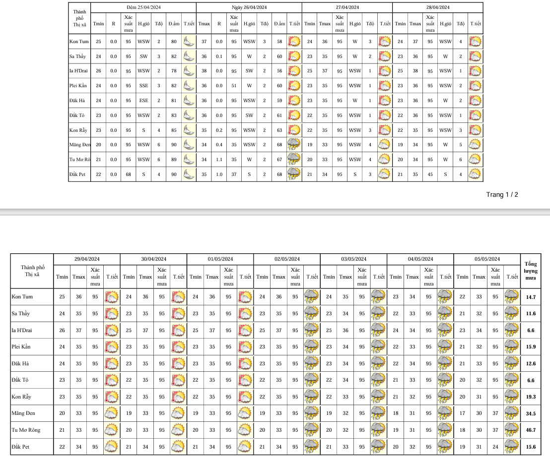 BẢN TIN DỰ BÁO, CẢNH BÁO THỜI TIẾT ĐIỂM ĐẾN 10 NGÀY KHU VỰC TỈNH KON TUM