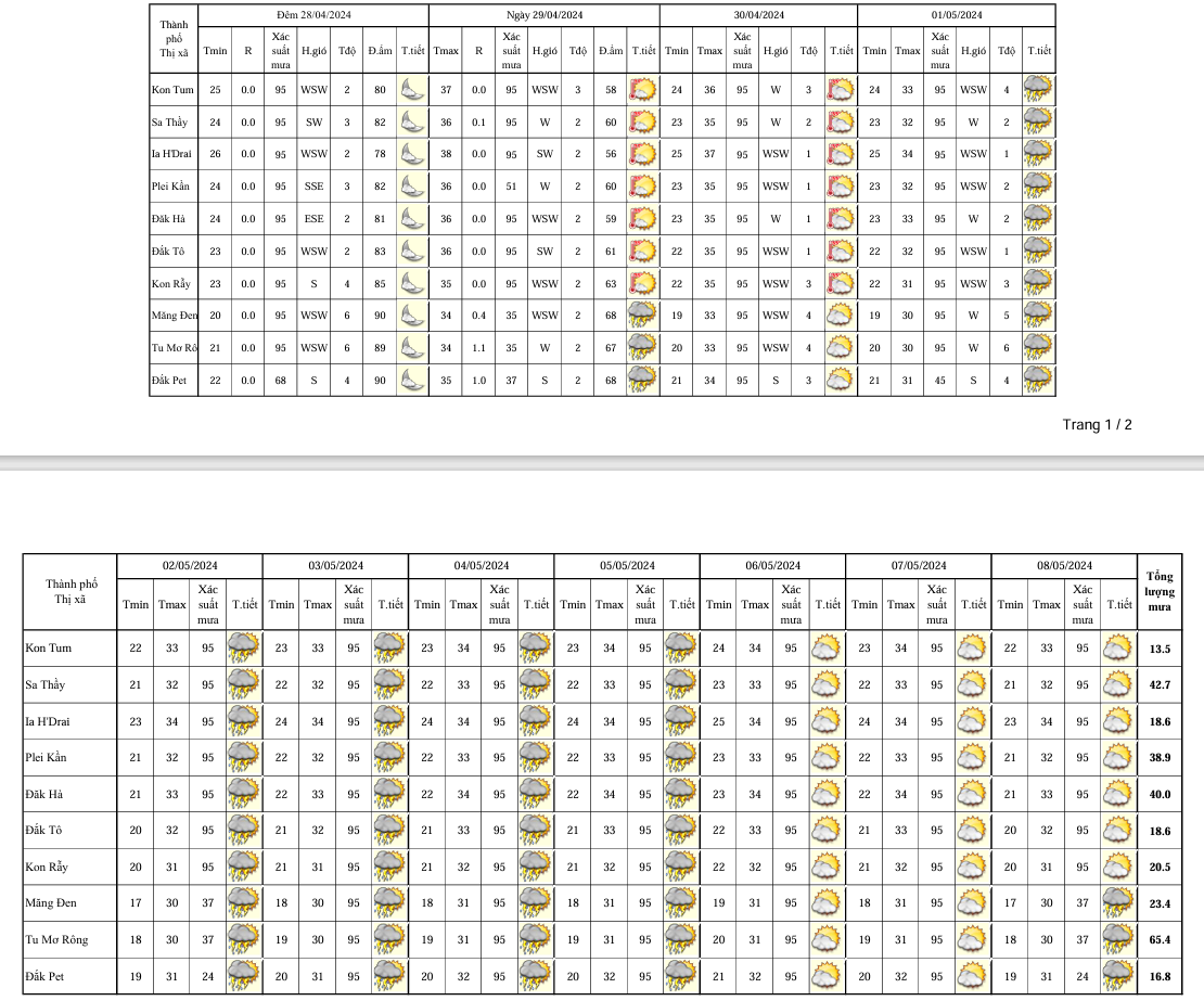 BẢN TIN DỰ BÁO, CẢNH BÁO THỜI TIẾT ĐIỂM ĐẾN 10 NGÀY KHU VỰC TỈNH KON TUM