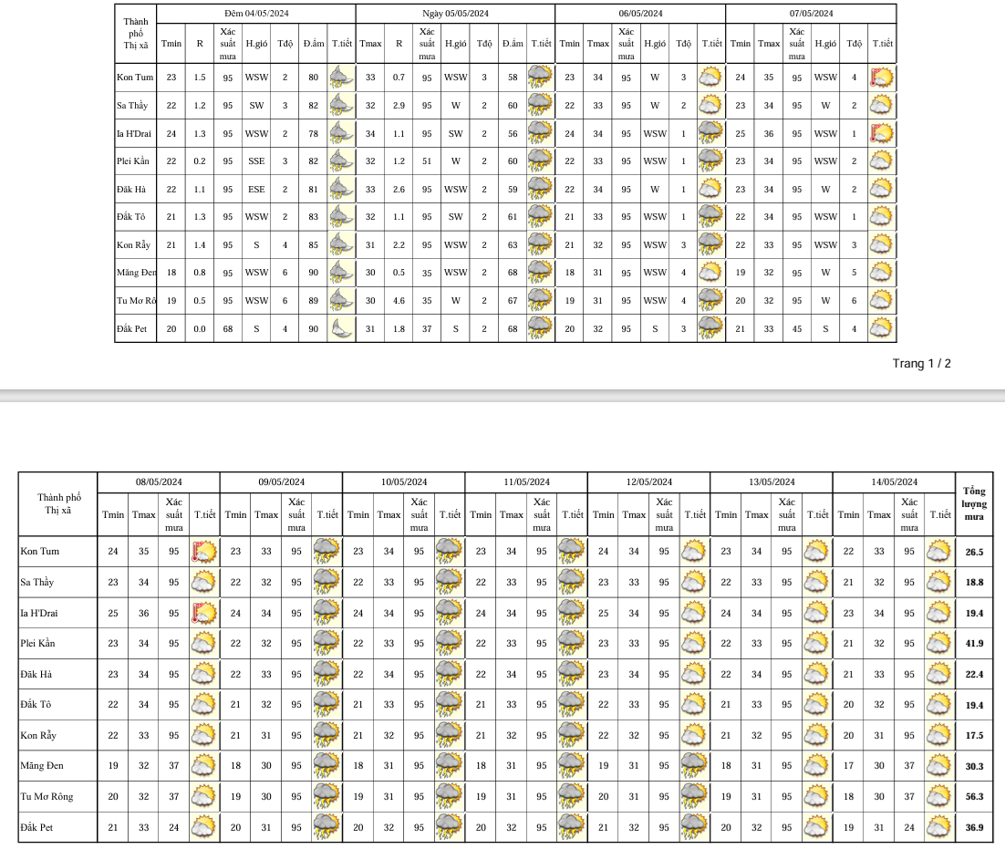 BẢN TIN DỰ BÁO, CẢNH BÁO THỜI TIẾT ĐIỂM ĐẾN 10 NGÀY KHU VỰC TỈNH KON TUM