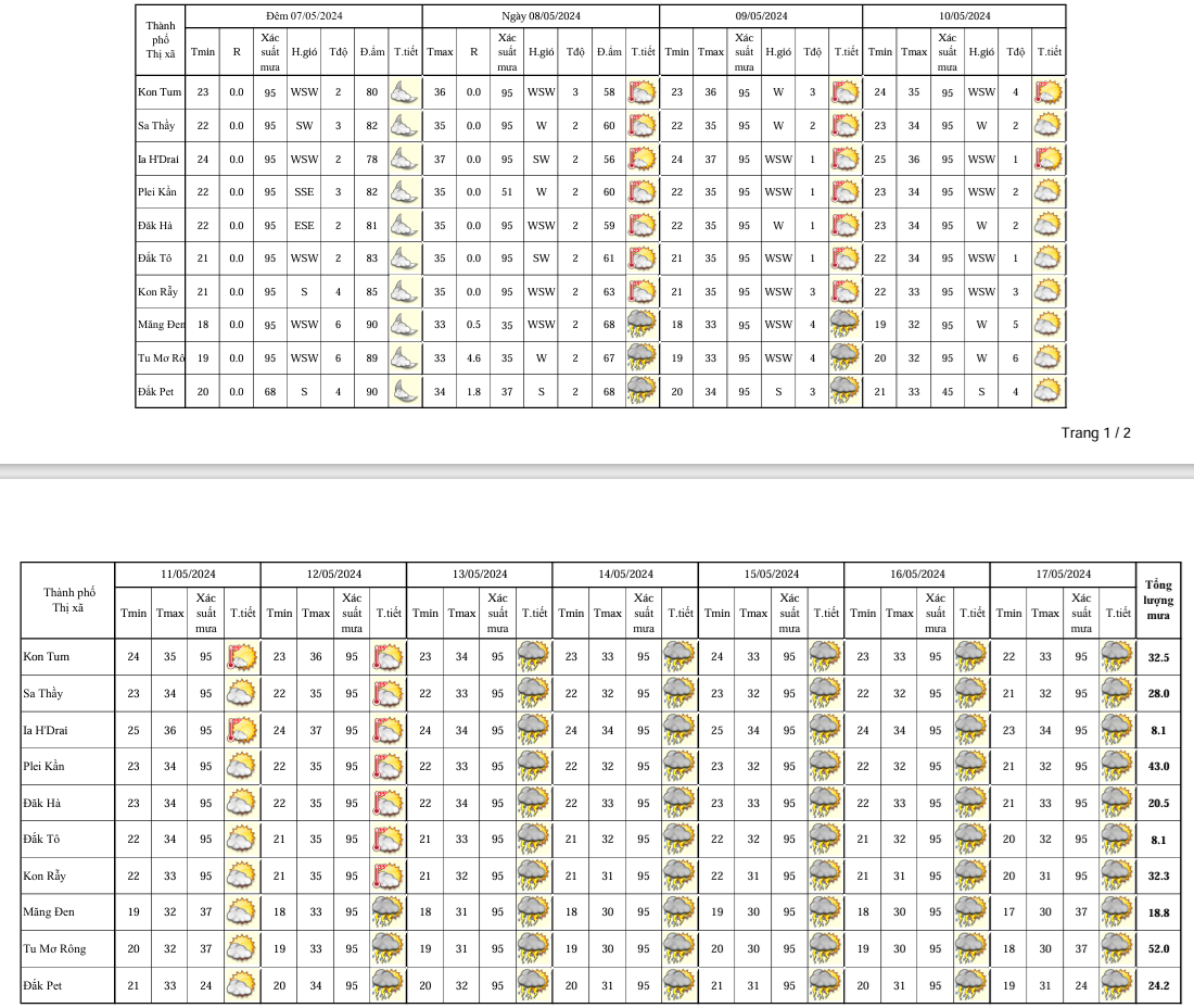 BẢN TIN DỰ BÁO, CẢNH BÁO THỜI TIẾT ĐIỂM ĐẾN 10 NGÀY KHU VỰC TỈNH KON TUM
