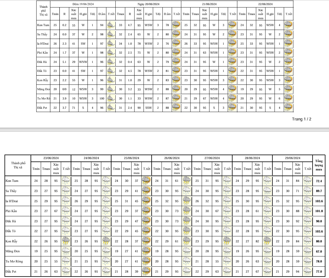 BẢN TIN DỰ BÁO, CẢNH BÁO THỜI TIẾT ĐIỂM ĐẾN 10 NGÀY KHU VỰC TỈNH KON TUM