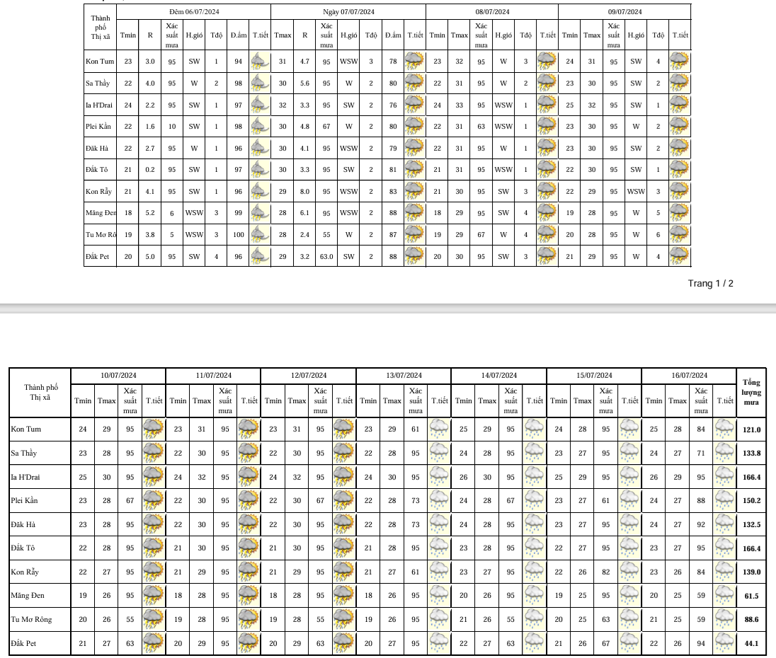 BẢN TIN DỰ BÁO, CẢNH BÁO THỜI TIẾT ĐIỂM ĐẾN 10 NGÀY KHU VỰC TỈNH KON TUM