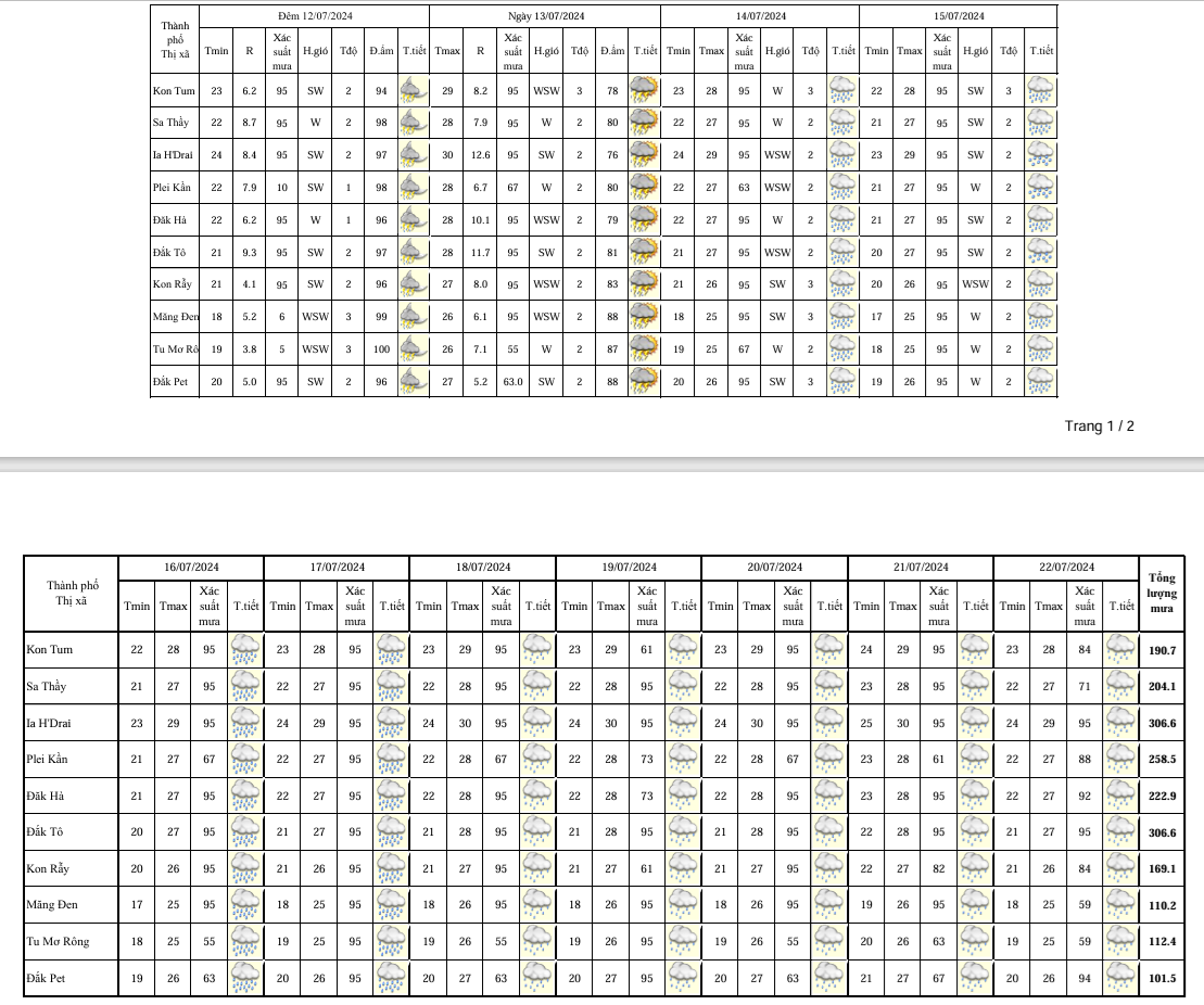 BẢN TIN DỰ BÁO, CẢNH BÁO THỜI TIẾT ĐIỂM ĐẾN 10 NGÀY KHU VỰC TỈNH KON TUM