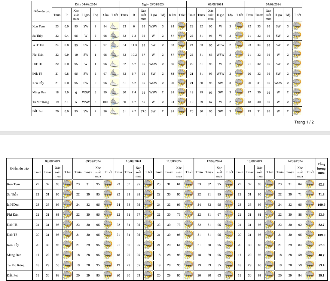 BẢN TIN DỰ BÁO, CẢNH BÁO THỜI TIẾT ĐIỂM ĐẾN 10 NGÀY KHU VỰC TỈNH KON TUM