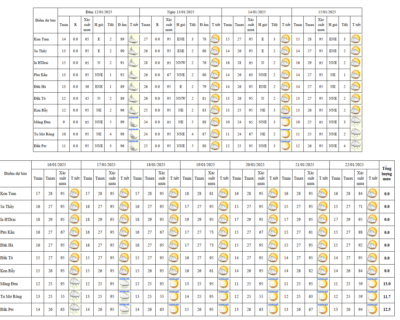 BẢN TIN DỰ BÁO, CẢNH BÁO THỜI TIẾT ĐIỂM ĐẾN 10 NGÀY KHU VỰC TỈNH KON TUM