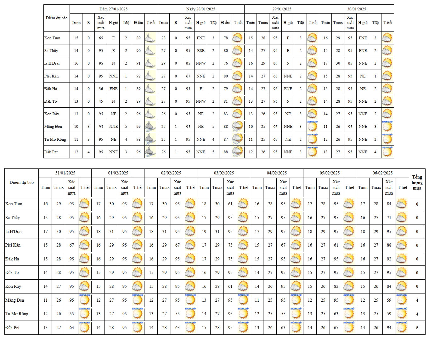 BẢN TIN DỰ BÁO, CẢNH BÁO THỜI TIẾT ĐIỂM ĐẾN 10 NGÀY KHU VỰC TỈNH KON TUM