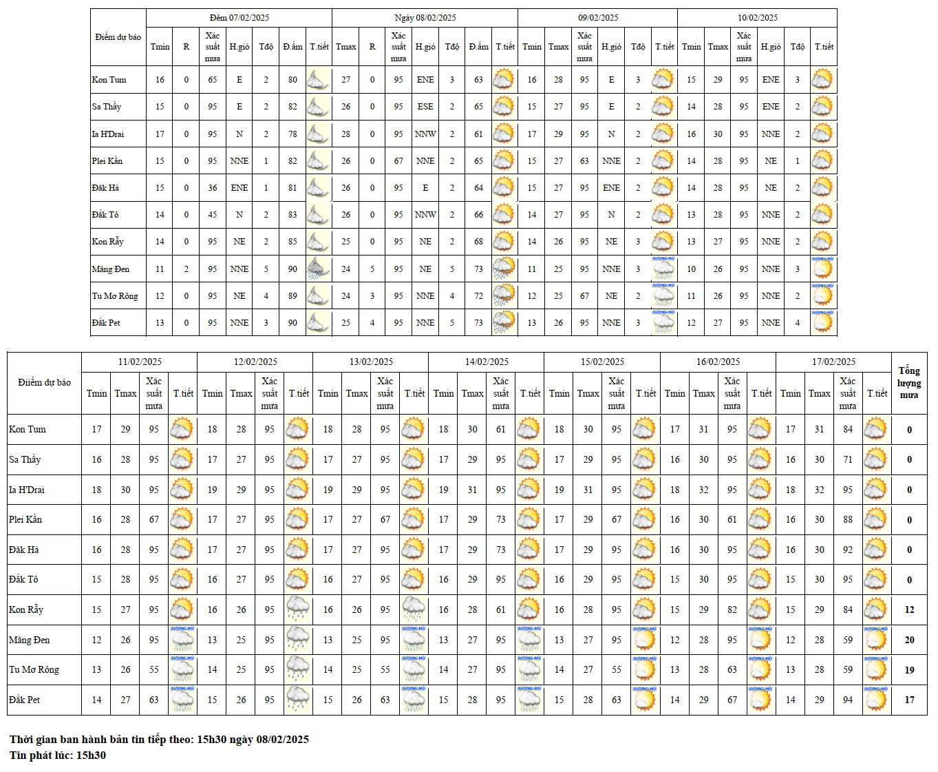 BẢN TIN DỰ BÁO, CẢNH BÁO THỜI TIẾT ĐIỂM ĐẾN 10 NGÀY KHU VỰC TỈNH KON TUM