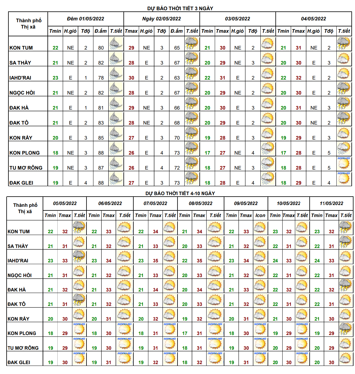 BẢN TIN DỰ BÁO ĐIỂM 10 NGÀY