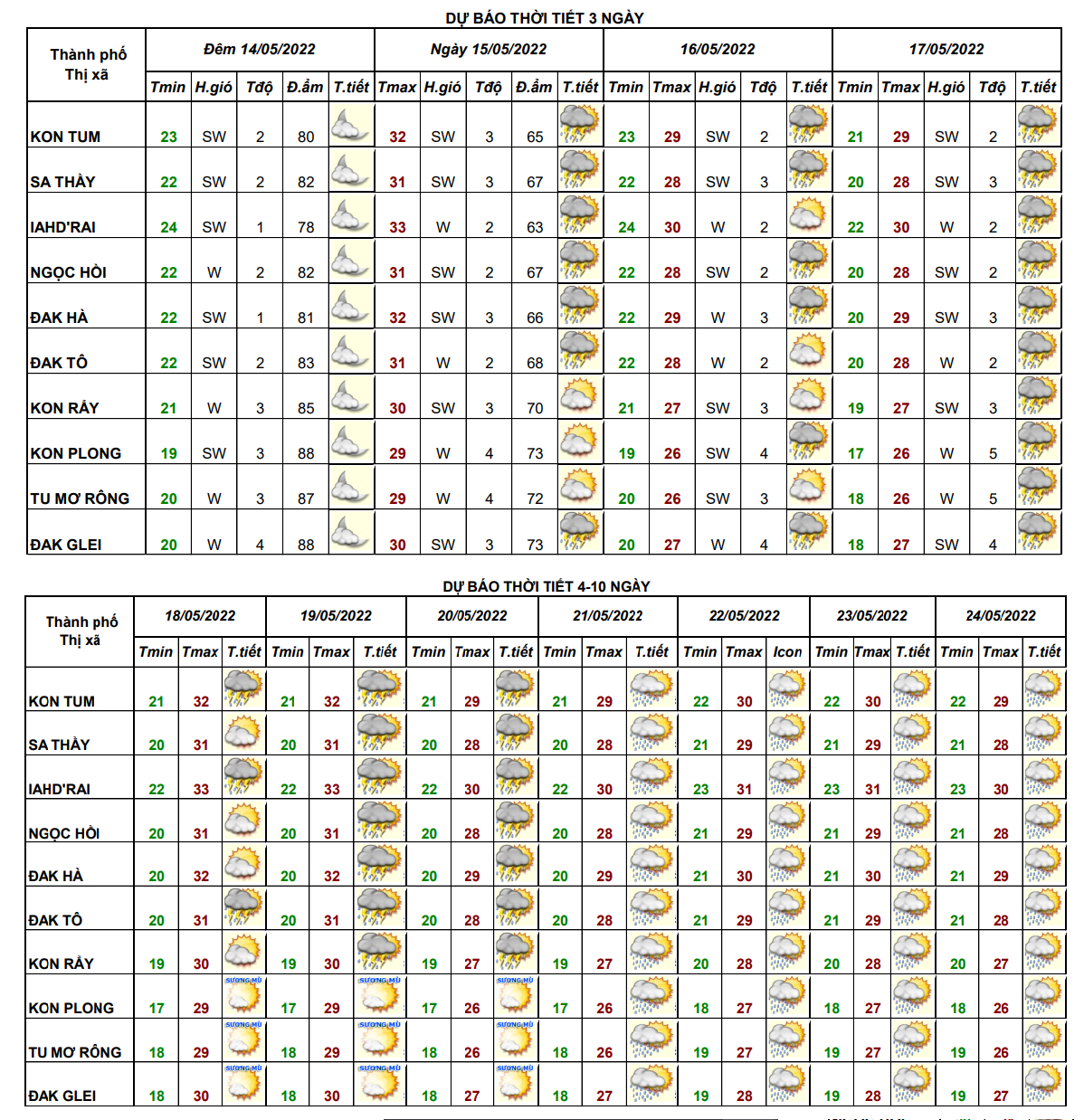 BẢN TIN DỰ BÁO ĐIỂM 10 NGÀY