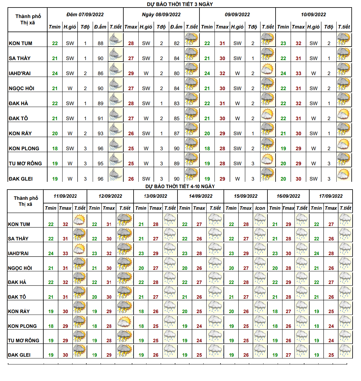 BẢN TIN DỰ BÁO THỜI TIẾT ĐIỂM 09 HUYỆN VÀ 01 THÀNH PHÓ