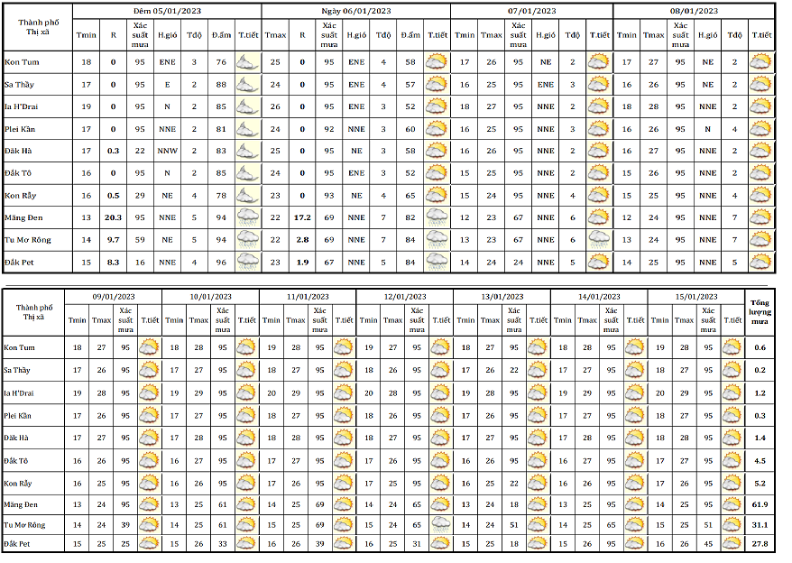BẢN TIN DỰ BÁO, CẢNH BÁO THỜI TIẾT ĐIỂM ĐẾN 10 NGÀY KHU VỰC TỈNH KON TUM