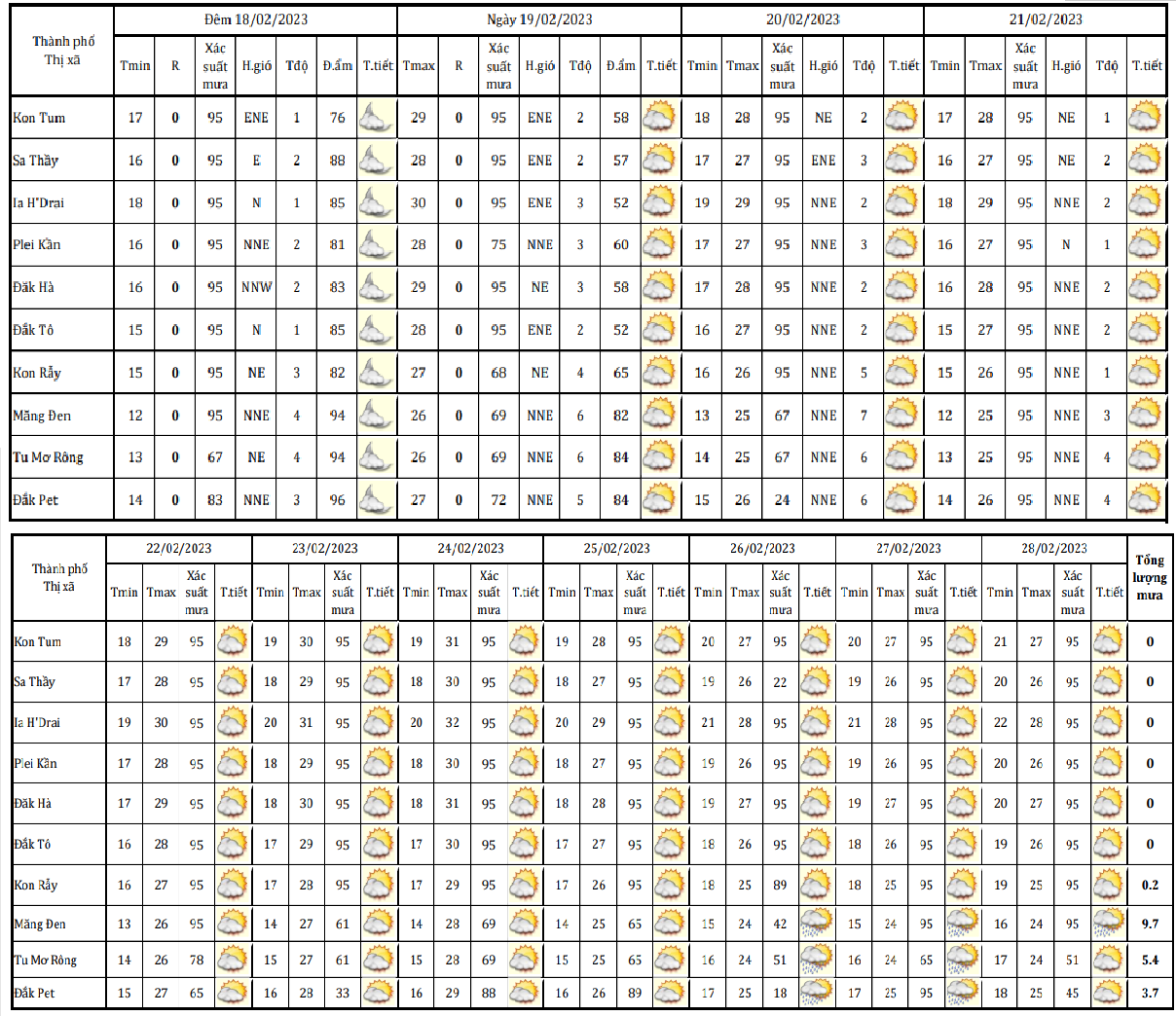 BẢN TIN DỰ BÁO, CẢNH BÁO THỜI TIẾT ĐIỂM ĐẾN 10 NGÀY KHU VỰC TỈNH KON TUM
