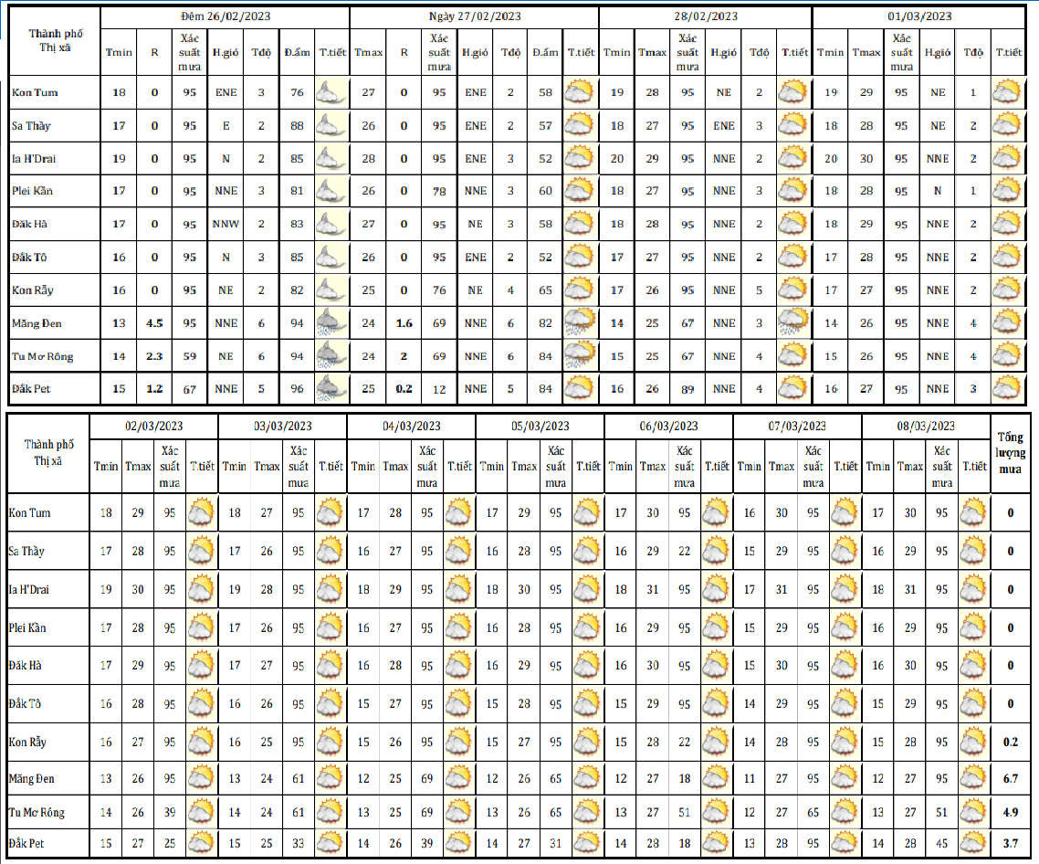 BẢN TIN DỰ BÁO, CẢNH BÁO THỜI TIẾT ĐIỂM ĐẾN 10 NGÀY KHU VỰC TỈNH KON TUM
