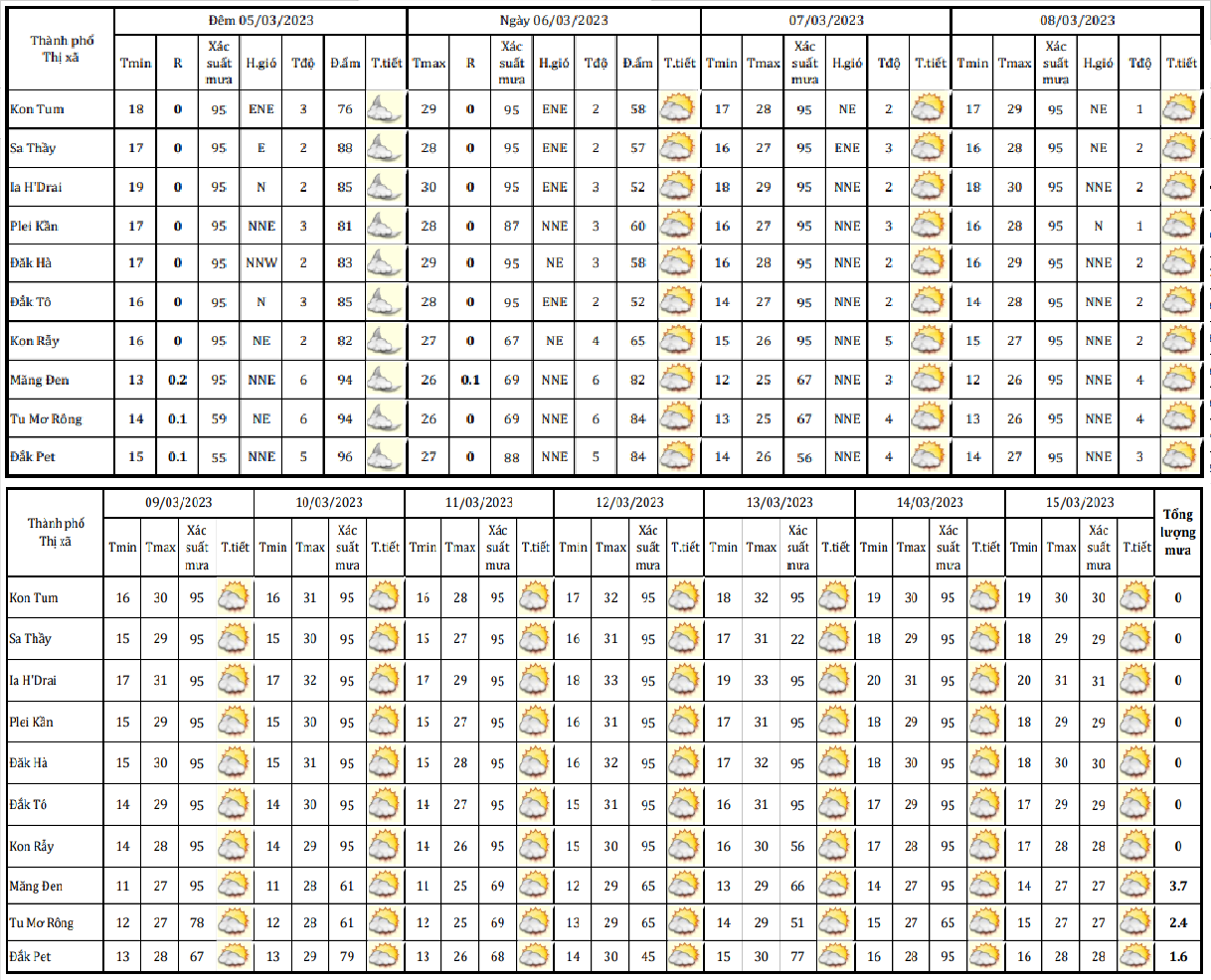 BẢN TIN DỰ BÁO, CẢNH BÁO THỜI TIẾT ĐIỂM ĐẾN 10 NGÀY KHU VỰC TỈNH KON TUM