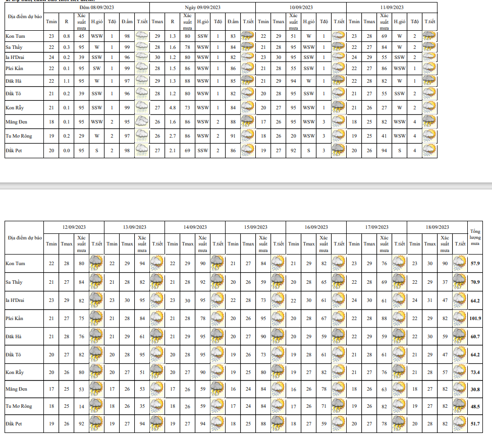BẢN TIN DỰ BÁO, CẢNH BÁO THỜI TIẾT ĐIỂM ĐẾN 10 NGÀY KHU VỰC TỈNH KON TUM