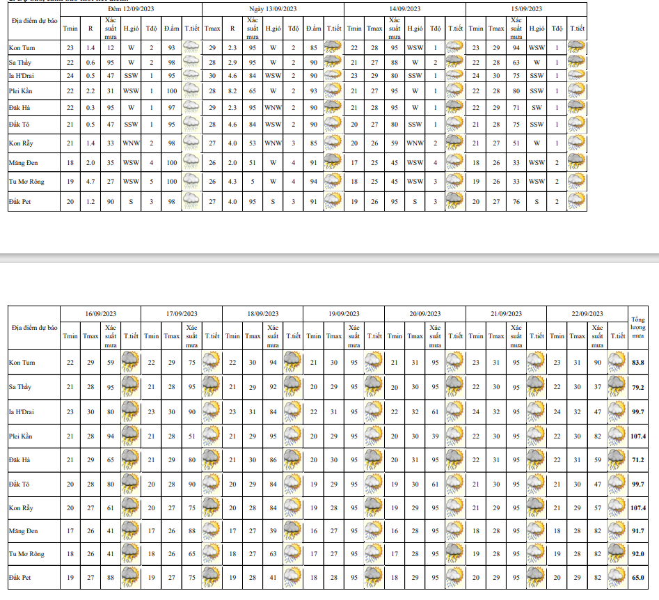 BẢN TIN DỰ BÁO, CẢNH BÁO THỜI TIẾT ĐIỂM ĐẾN 10 NGÀY KHU VỰC TỈNH KON TUM
