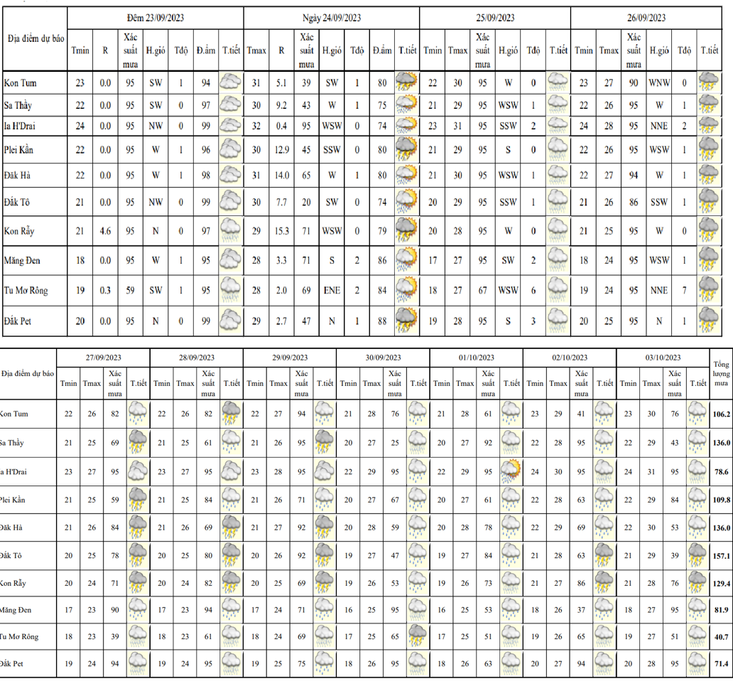 BẢN TIN DỰ BÁO, CẢNH BÁO THỜI TIẾT ĐIỂM ĐẾN 10 NGÀY KHU VỰC TỈNH KON TUM