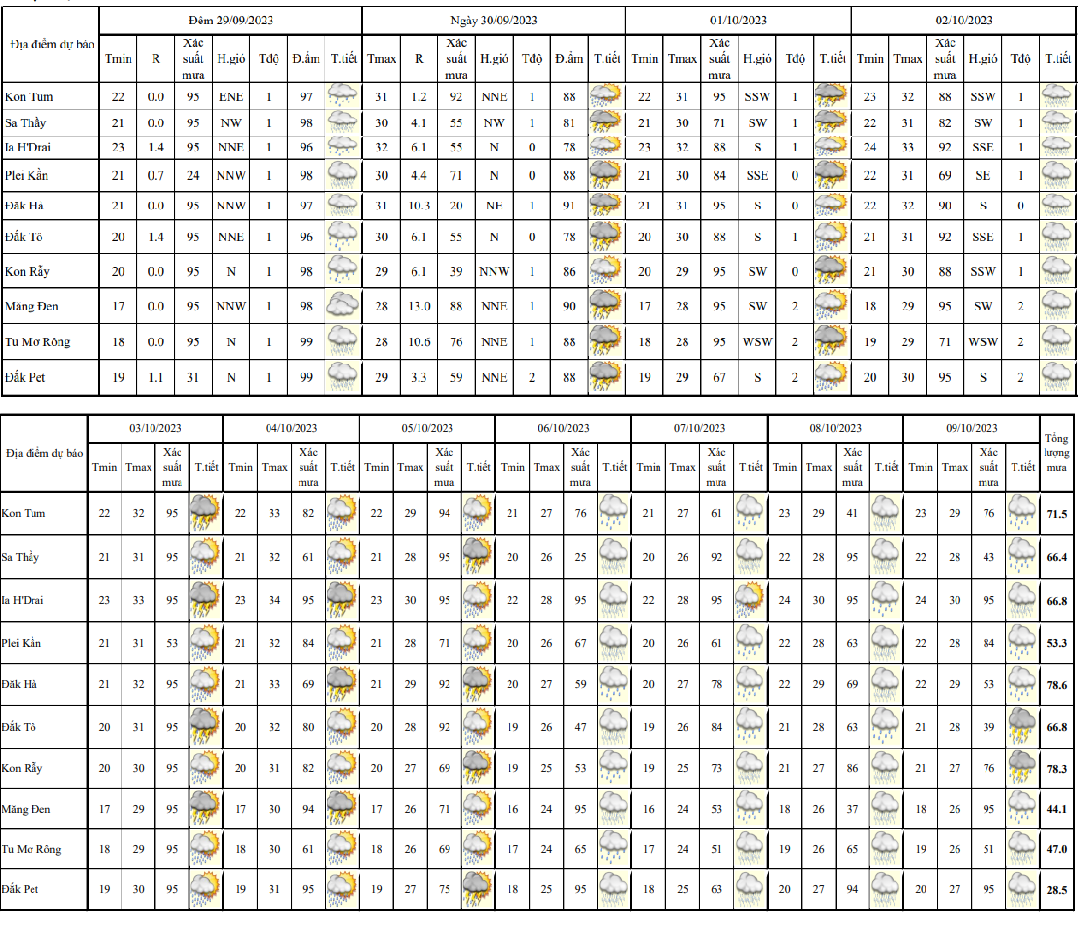 BẢN TIN DỰ BÁO, CẢNH BÁO THỜI TIẾT ĐIỂM ĐẾN 10 NGÀY KHU VỰC TỈNH KON TUM