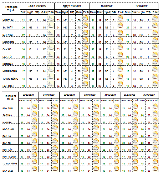 BẢN TIN THỜI TIẾT CÁC HUYỆN VÀ TP KON TUM TRONG 10 NGÀY TỚI