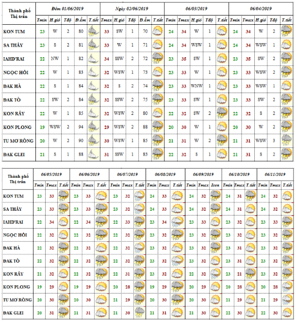 BẢN TIN DỰ BÁO THỜI TIẾT ĐIỂM TỪ NGÀY 02 ĐẾN NGÀY 11 THÁNG 6 NĂM 2019