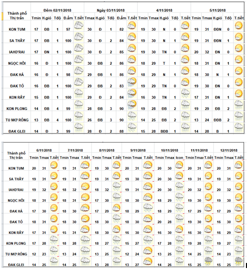 BẢN TIN THỜI TIẾT CÁC HUYỆN TỪ NGÀY 30/10/2018 ĐẾN NGÀY 08/11/2018