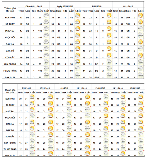 BẢN TIN THỜI TIẾT CÁC HUYỆN TỪ NGÀY 30/10/2018 ĐẾN NGÀY 08/11/2018