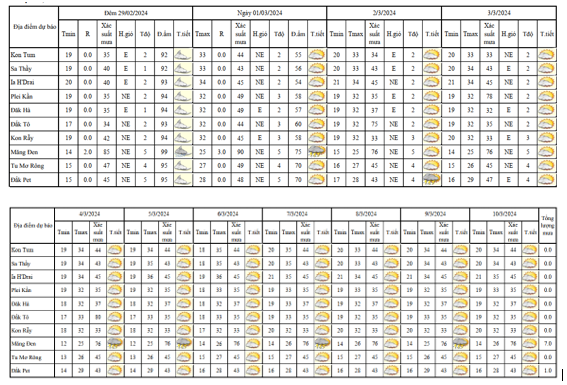 BẢN TIN DỰ BÁO, CẢNH BÁO THỜI TIẾT ĐIỂM ĐẾN 10 NGÀY KHU VỰC TỈNH KON TUM