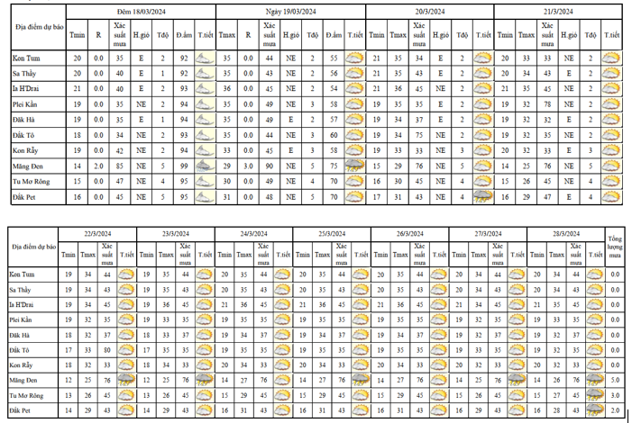 BẢN TIN DỰ BÁO, CẢNH BÁO THỜI TIẾT ĐIỂM ĐẾN 10 NGÀY KHU VỰC TỈNH KON TUM