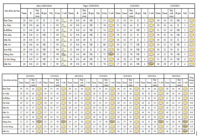 BẢN TIN DỰ BÁO, CẢNH BÁO THỜI TIẾT ĐIỂM ĐẾN 10 NGÀY KHU VỰC TỈNH KON TUM