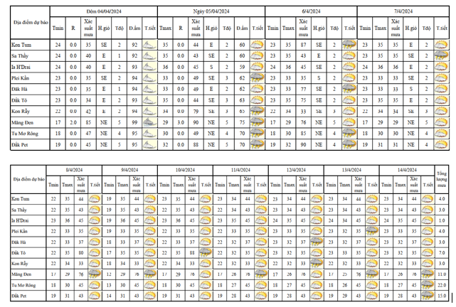 BẢN TIN DỰ BÁO, CẢNH BÁO THỜI TIẾT ĐIỂM ĐẾN 10 NGÀY KHU VỰC TỈNH KON TUM