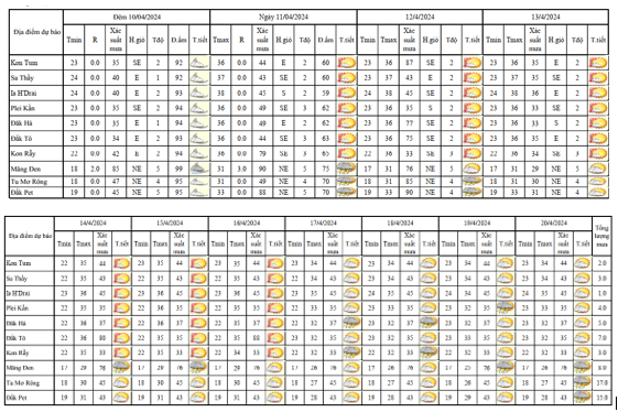BẢN TIN DỰ BÁO, CẢNH BÁO THỜI TIẾT ĐIỂM ĐẾN 10 NGÀY KHU VỰC TỈNH KON TUM
