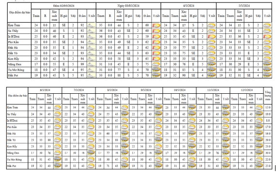BẢN TIN DỰ BÁO, CẢNH BÁO THỜI TIẾT ĐIỂM ĐẾN 10 NGÀY KHU VỰC TỈNH KON TUM