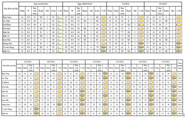 BẢN TIN DỰ BÁO, CẢNH BÁO THỜI TIẾT ĐIỂM ĐẾN 10 NGÀY KHU VỰC TỈNH KON TUM