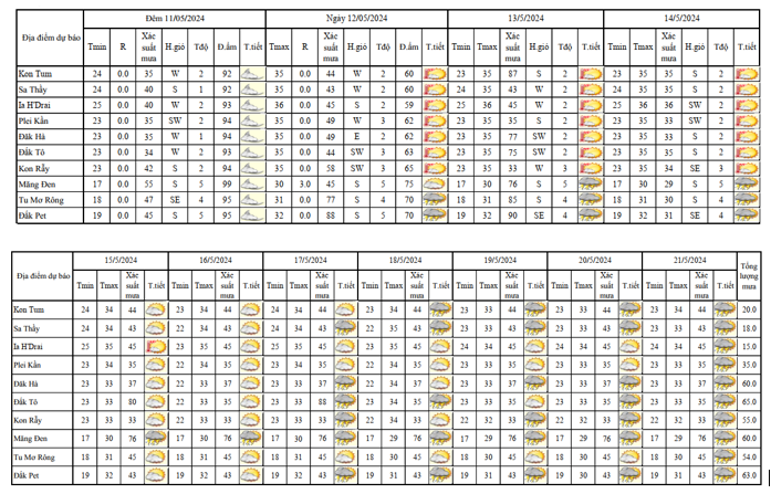 BẢN TIN DỰ BÁO, CẢNH BÁO THỜI TIẾT ĐIỂM ĐẾN 10 NGÀY KHU VỰC TỈNH KON TUM