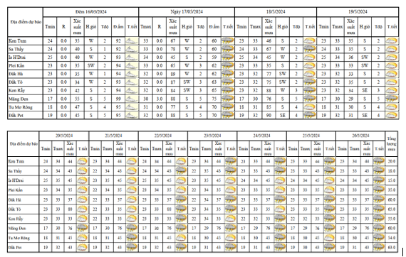 BẢN TIN DỰ BÁO, CẢNH BÁO THỜI TIẾT ĐIỂM ĐẾN 10 NGÀY KHU VỰC TỈNH KON TUM