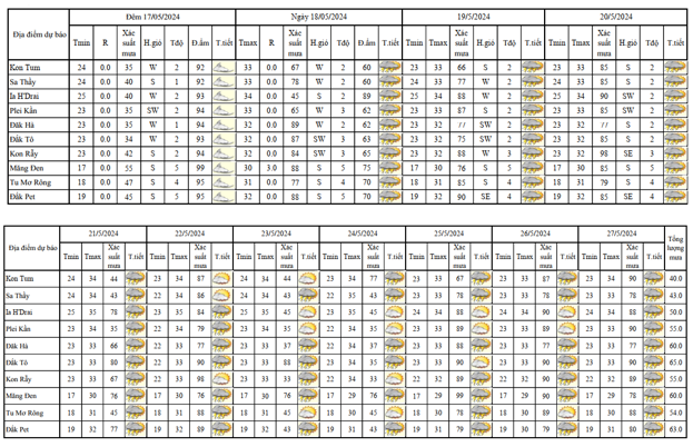 BẢN TIN DỰ BÁO, CẢNH BÁO THỜI TIẾT ĐIỂM ĐẾN 10 NGÀY KHU VỰC TỈNH KON TUM