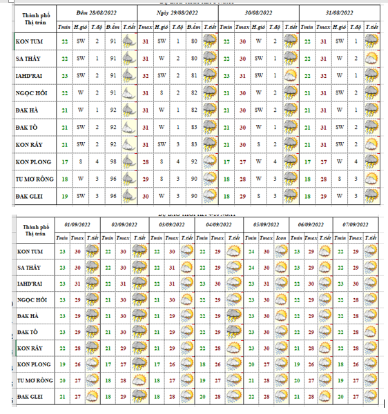 BẢN TIN DỰ BÁO THỜI TIẾT ĐIỂM 09 HUYỆN VÀ 01 THÀNH PHÓ