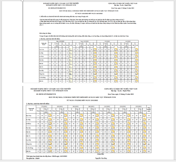 BẢN TIN DỰ BÁO, CẢNH BÁO THỜI TIẾT ĐIỂM ĐẾN 10 NGÀY KHU VỰC TỈNH KON TUM