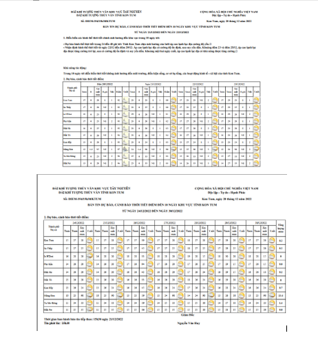 BẢN TIN DỰ BÁO, CẢNH BÁO THỜI TIẾT ĐIỂM ĐẾN 10 NGÀY KHU VỰC TỈNH KON TUM