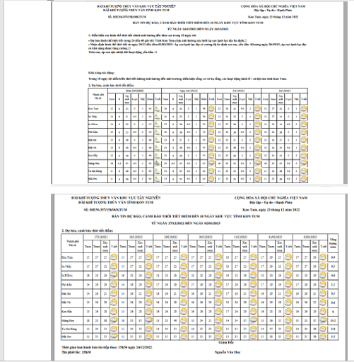 BẢN TIN DỰ BÁO, CẢNH BÁO THỜI TIẾT ĐIỂM ĐẾN 10 NGÀY KHU VỰC TỈNH KON TUM